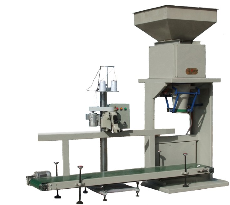 自動(dòng)顆粒灌裝機(jī)使用過程:人工協(xié)助上袋,自動(dòng)稱重、夾袋、充填,經(jīng)輸送帶傳遞進(jìn)行自動(dòng)封口或縫包
