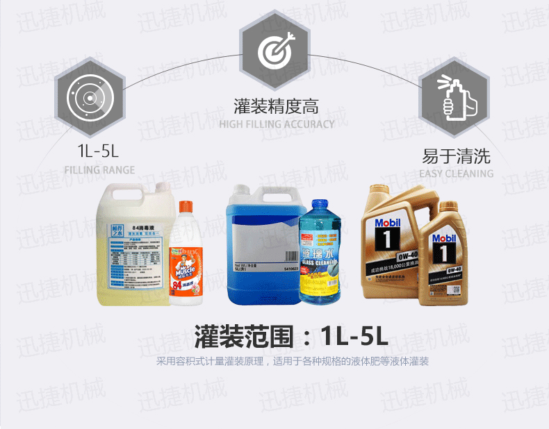 4、全自動洗手液液體灌裝機(jī)灌裝量調(diào)整方便,不需更換零配件,即可適用于不同規(guī)格的瓶子,調(diào)整方便,適應(yīng)性強(qiáng);