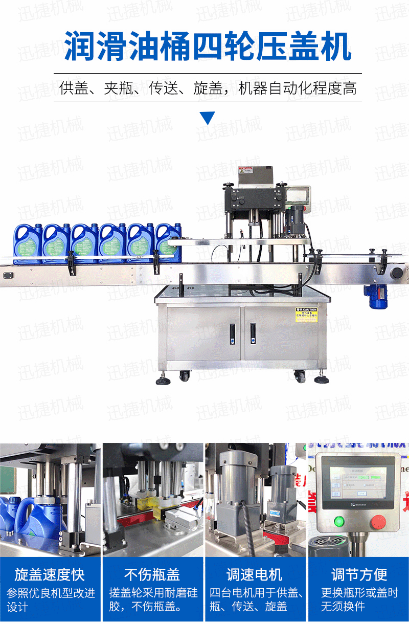 4.我們采用分系統(tǒng)動(dòng)力控制及供料,提升了灌裝速度;以1L為例,4頭灌裝機(jī)每小時(shí)可達(dá)到1000桶/小時(shí);灌裝在提升灌裝范圍的同時(shí),對(duì)計(jì)量方式進(jìn)行了改進(jìn),大大提高了灌裝精度,誤差1‰以內(nèi)。5.灌裝頭獨(dú)有的雙重防滴漏,灌裝下料口設(shè)計(jì)精細(xì),行程短,同時(shí)也提高了整條線的灌裝速度和灌裝精度,保證在正常灌裝過(guò)程中一滴油都不會(huì)滲漏。