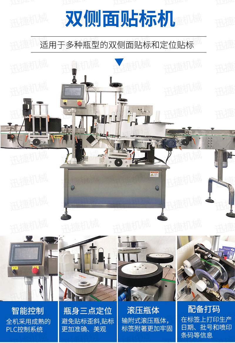 全機采用的技術,微電腦-PLC-電子光纖傳感器控制系統(tǒng),使整機運行穩(wěn)定、高速; 操作系統(tǒng)采用操作界面控制,操作簡便、實用、效率高,并有產(chǎn)量記數(shù)功能; 技術的速度快且穩(wěn)定; 適用范圍大,可用于各種尺寸的圓形瓶貼標; 輸附式滾壓瓶體,使標簽附著更加牢固; 前后段可選連線使用。